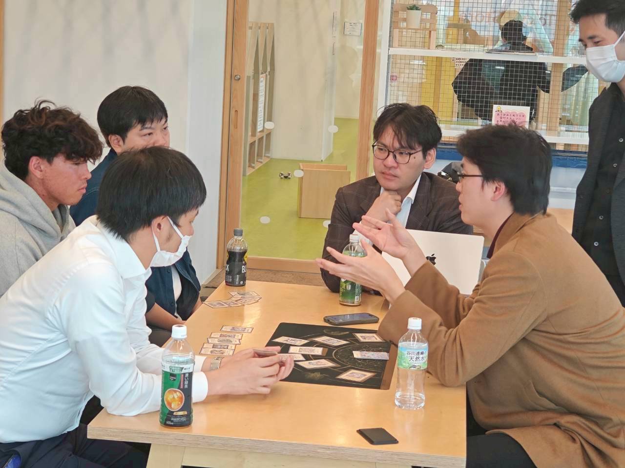 セッション1(35分) 2卓に分かれてプレイ。指南役は初めて手にした方々が担当、初回とは思えない見事なファシリテーションでした。