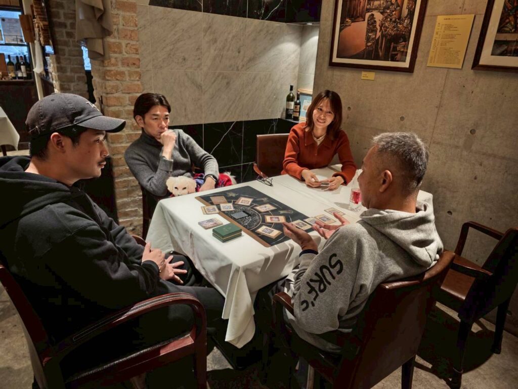 静かな熱狂の中、起点となる「感情労働」のカードが盤面に開かれ、私たちの予測不能な対話の旅が幕を開けました。